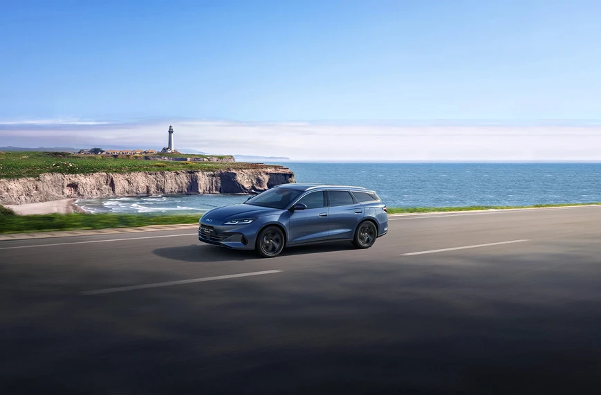 The SEAL 6 Super Hybrid Touring combines BYD’s signature design language with a practical, spacious cabin layout. The front features smooth, ocean-like lines and a sharper lower section that gives it a clean, modern look.
